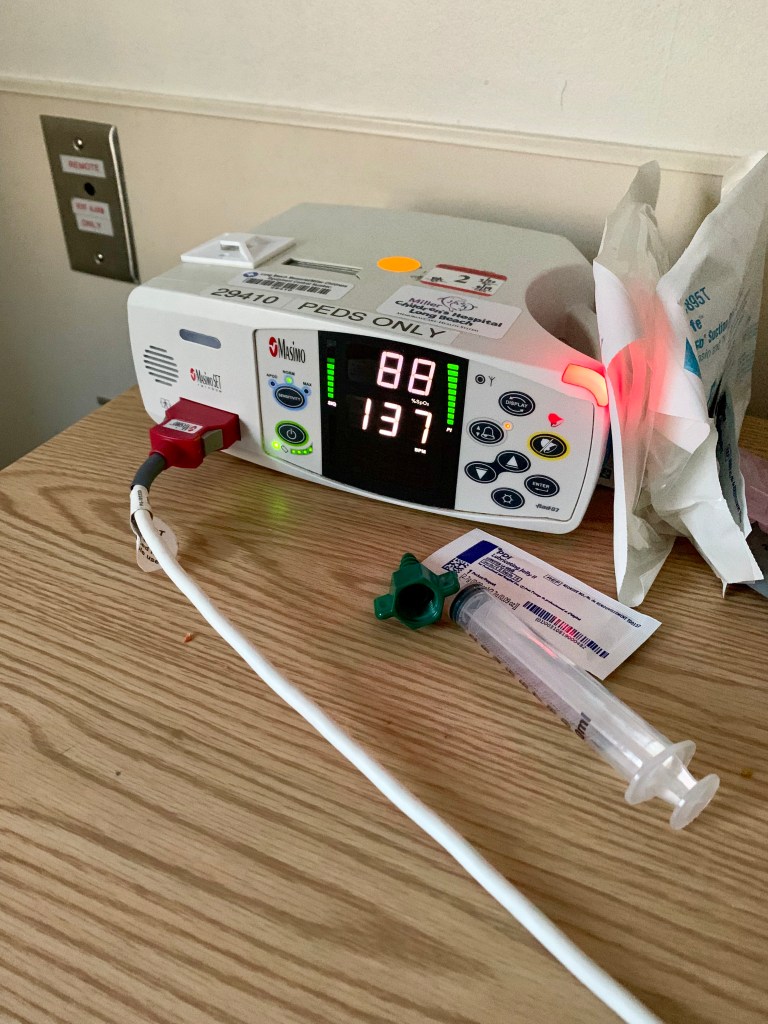 The early hours of this morning felt like something right out of a twisted psychological thriller. Oliver’s schedule is pretty off and he was still wide awake at midnight. I lied down in the parent chair next to his bed, put on the tv and tried to rest, hoping he would fall asleep too. We both started to doze off only to be ripped from sleep by his pulse ox alarm. Over and over again for the next hour he set it off, dipping into the low 80’s despite the oxygen support. That feeling of waiting with baited breath for the next disruptive cry of the machine to break the silence makes it impossible to calm my nerves.