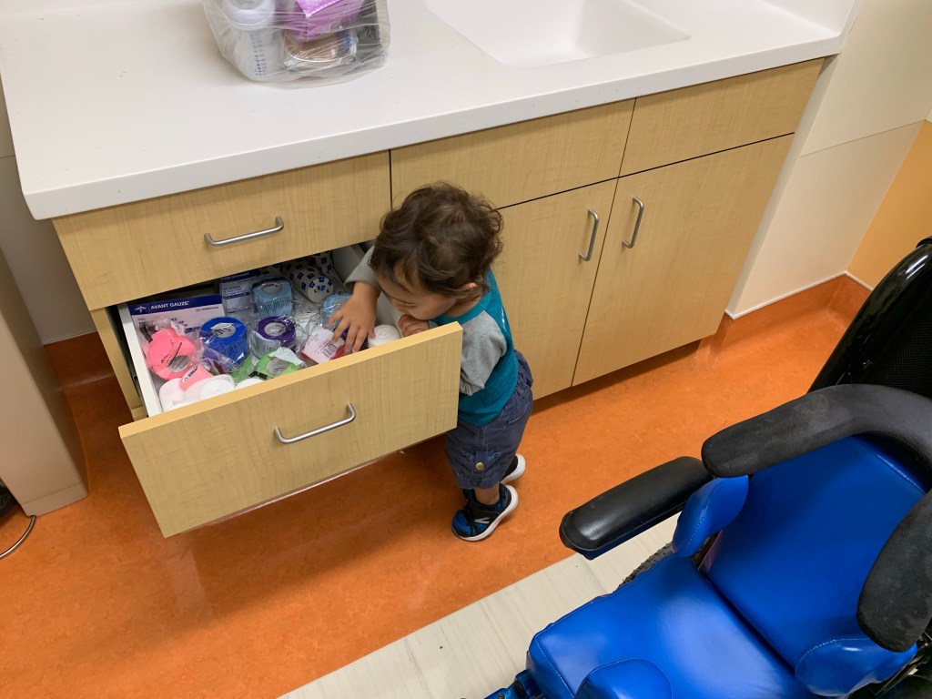 On one hand, there’s tons of super cool equipment to climb on, swings bolted to the ceiling of the living room, a therapy center that seems to be your own personal playground and PLENTY of trips to the doctors office where you can drive mom insane by touching all the germy things with your tongue.