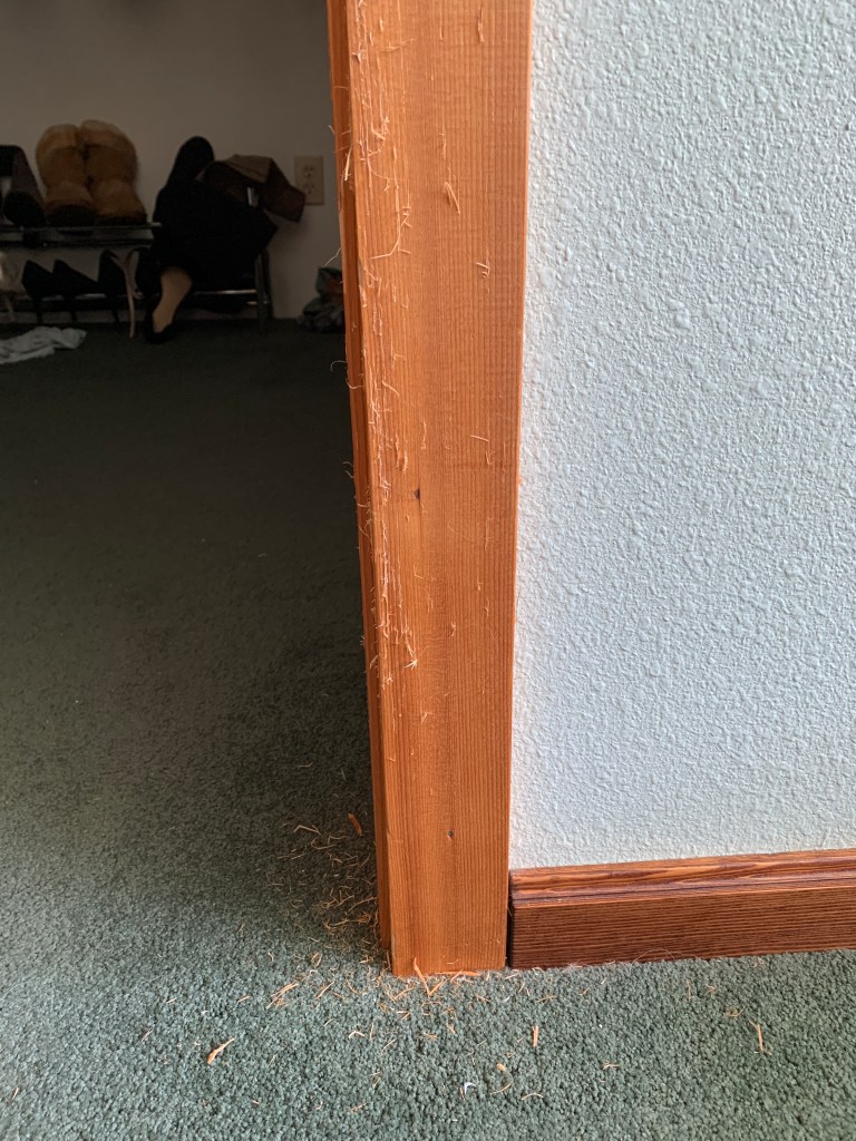 I woke up this morning to the all-too-familiar sound of destruction, our cat digging her claws into the soft pine wood of the closet door frame. I stumbled out of bed and batted her away asking myself for the four millionth time, “Why do we have pets?”
