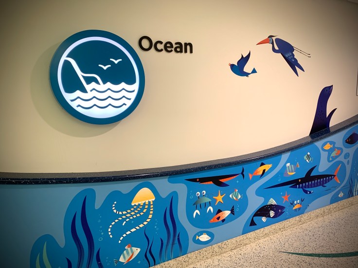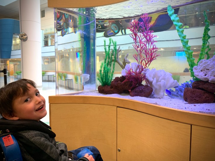 Fish tanks throughout the building hold majestic angel fish and other brightly colored cousins which I can’t seem to remember the name of. They create the feeling of a day at the aquarium rather than a hospital.
