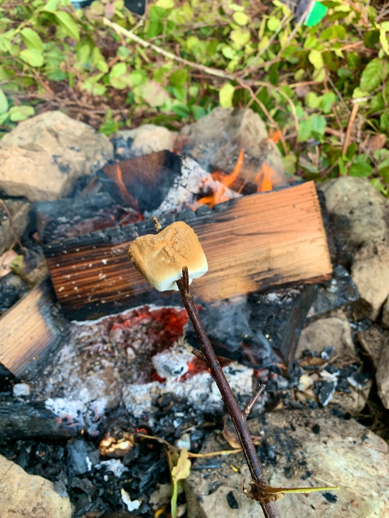 I quickly tried to build a fire to keep the kids warm and occupy them with their new favorite activity, the roasting of marshmallows.